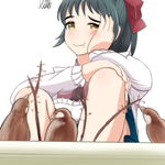 育てていた紫蘇(の実)を雀に食べられる伊良湖ちゃんです。 #イラスト好きな人と繋がりたい