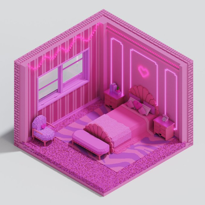 Pink Cottage 🪷 Wanted this one to look like a tiny toy! #magicavoxel #voxelart #voxel #voxelartist #Pink #3dart