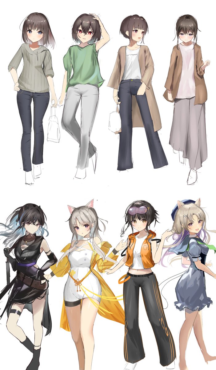 1 10 #今月描いた絵を晒そう めちゃ忙しかったので短い時間でそれっぽく見せるためシルエットから描くのを試しました! 全部雑ラフ→ラフの上から色塗り→線画の順で描いてます ※模写あり 22/05/31 15:55