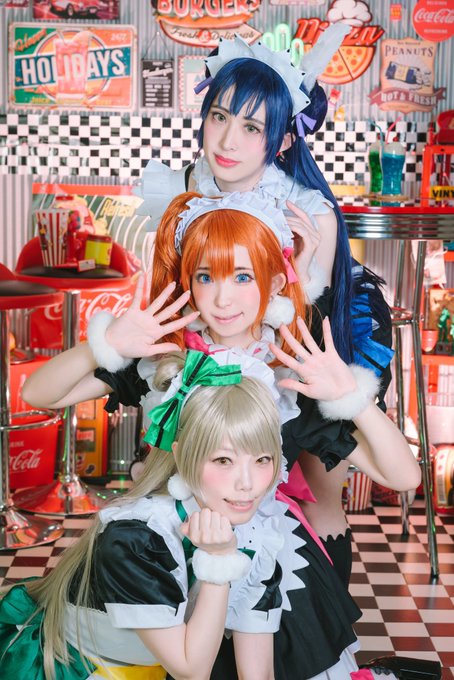 cosplay ラブライブ! / μ's もぎゅっと“love”で接近中! 高坂穂乃果/ななる 南ことり/みっみ 園田海未/未央 *̣̣̥- - - - - - - - - - - - - - - - - -🧡🩶💙˖° photo*まさ様 studio*ハウススタジオイヴ様 #0603もぎっと併せしたっちゃん