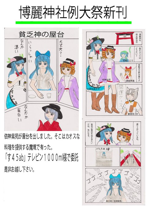 例大祭お疲れ様です。今回は仕事の関係でサークル参加出来ませんでしたので初の委託という形で本のみを出しました。委託先のカバヂ先生、サークルに来て頂いた方ありがとうございました。紅楼夢と秋季例大祭にはサークル参加する予定です。 #東方の90分お絵描き #依神女苑