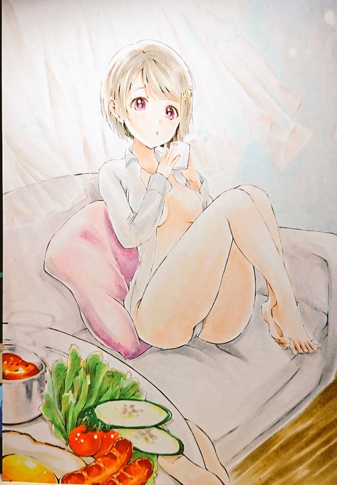 お泊まり朝食かすみん #アナログ絵 #コピック