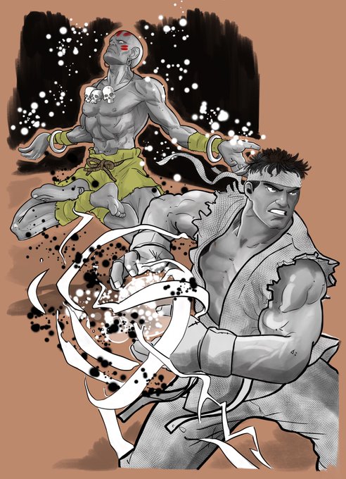 Usando algún trabajo del #inktober estoy dándole formas a trabajos finales #streetfighter #dalshim #ryu #ilustraciondigital #ilustración #illustration