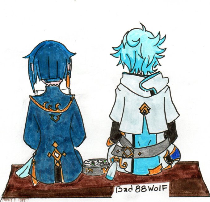 Day 13 Roof Xingqiu x Chongyun #genshinimpact #inktober #inktober2021 #Xingqiu #Chongyun #drawings #drawtober #drawingoftheday #fanart #原神 #chongqiu