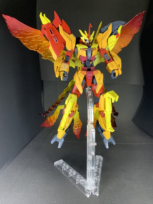 フェニックスリゼアーマー完成 不死鳥をイメージした翼のグラデーションうまくいきました! 背景なんとかならないかな、、、 いい方法ある方教えていただけると嬉しいです! #ガンプラ好きと繋がりたい #ガンプラの画像貼るとrtされると聞いて #ガンプラはどんな自由な発想で作ってもいいんだ
