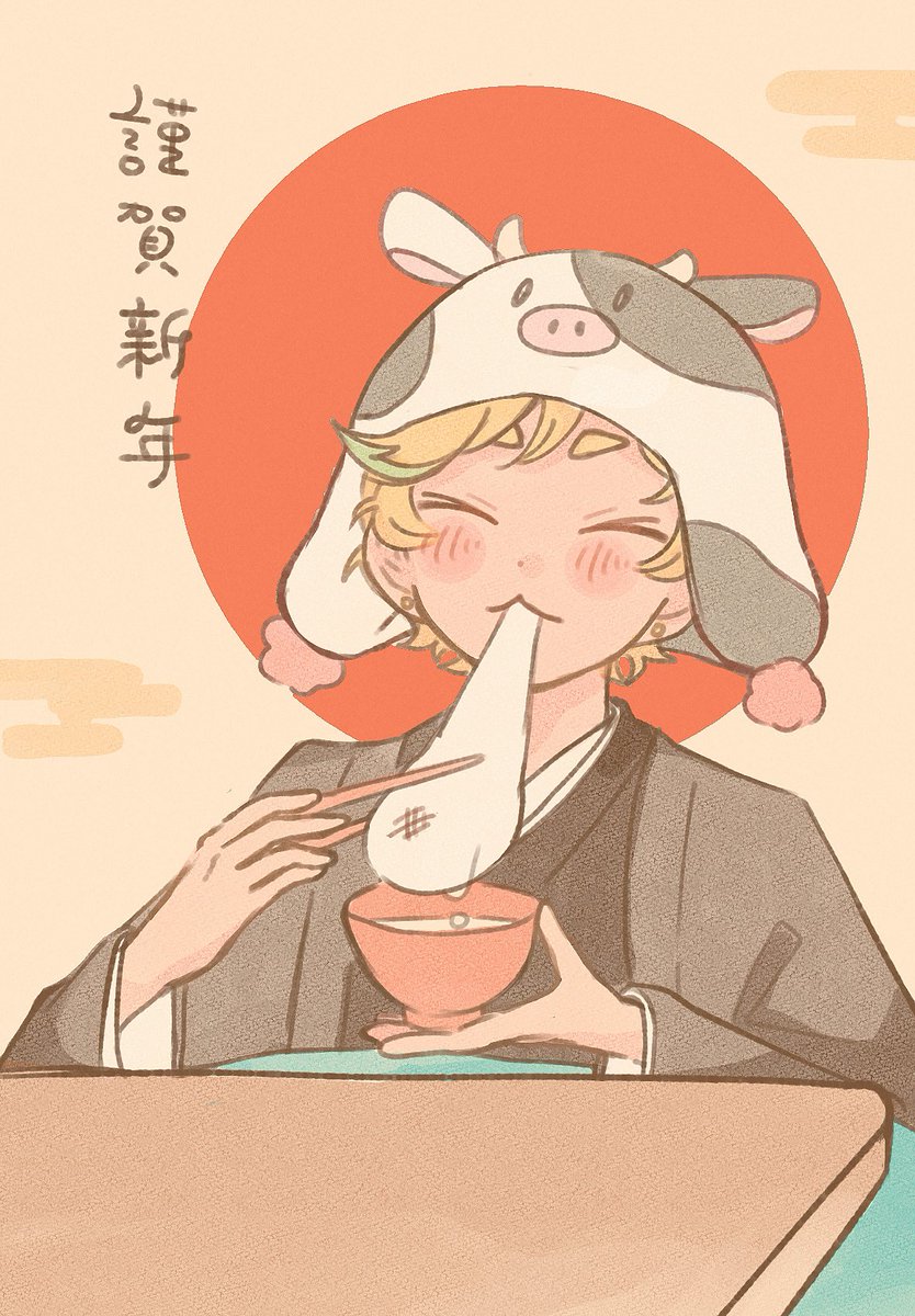 96 383 描き初めおもち🐄 21/01/01 13:14