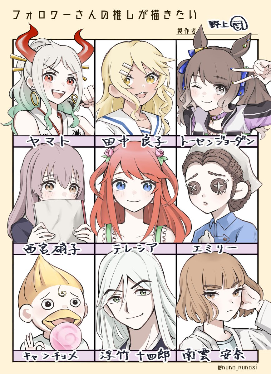 14 41 #フォロワーさんの推しが描きたい リクエストありがとうございました!!!楽しかった!! 余った枠はゴルシちゃんで埋めました🦄🦄 23/08/21 04:25