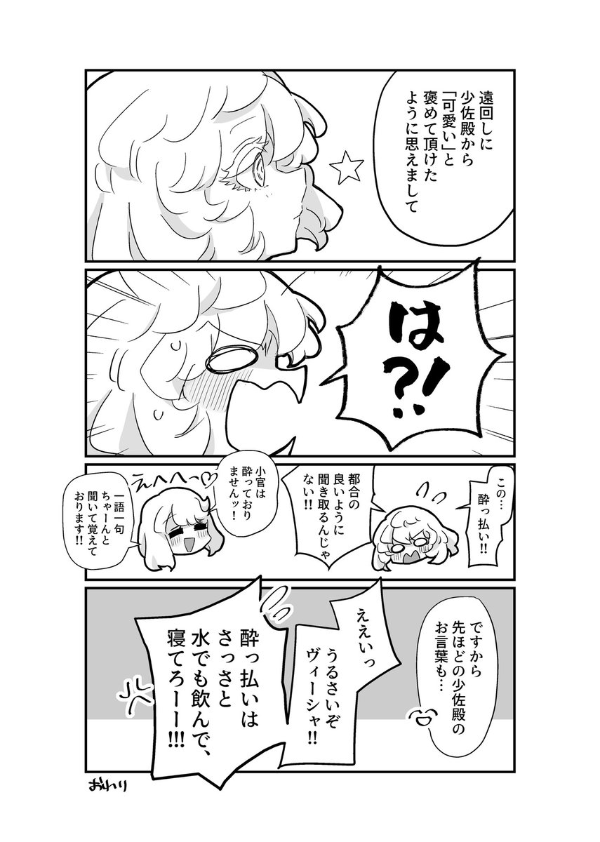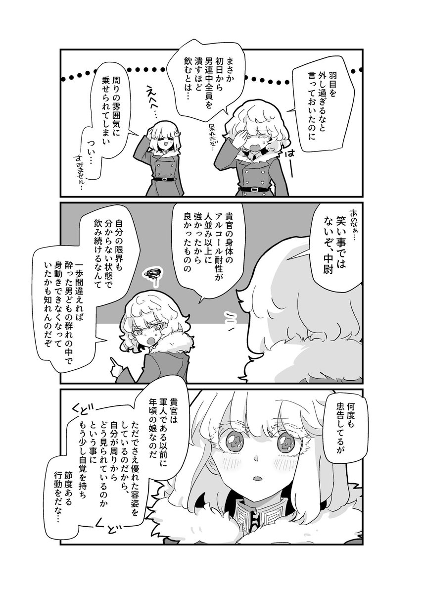 (続き)心配する上官と酔っ払い副官の漫画 #タニャヴィシャ #ヴィシャタニャ twitter.com/nanmo112/statu…