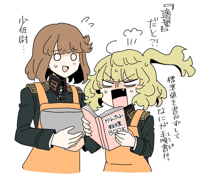 料理に苦戦する上司とそれを見守る副官の落描き #タニャヴィシャ #ヴィシャタニャ