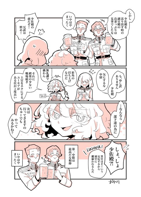 21 83 (続き)心配する上官と酔っ払い副官の漫画 #タニャヴィシャ #ヴィシャタニャ twitter.com/nanmo112/statu… 23/08/22 23:10