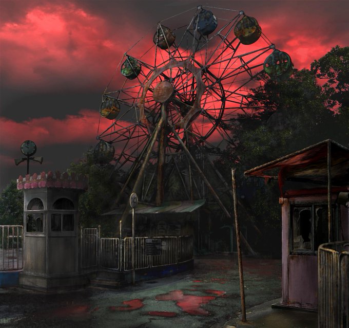 個人的に私が描いた絵の中で気にっているのは、2の遊園地のこの絵です。 ちなみに、この遊園地は日立かみね遊園地がモデルとなっています。(後で消すかも)#SIREN2015