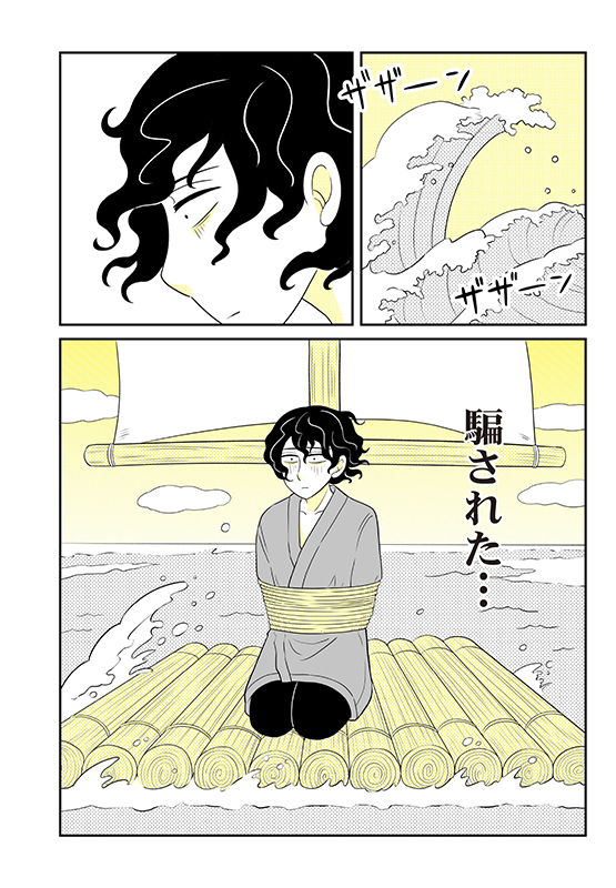 \🐈第1話更新🐈/ 『#ねこじまながし』ニュースクランチで今日からスタート! 海に漂う幸薄そうな青年。一体何が…!? 🔽続きはこちら wanibooks-newscrunch.com/articles/-/4062