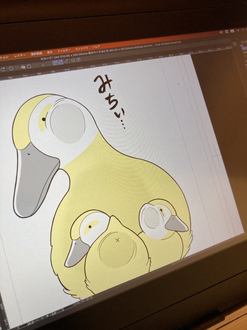 データフォルダ整理してたら自分でも忘れてたのが出て来た!多分3年くらい前の表紙のボツ案かな…?今となっては珍しい(というか多分この1枚しかない)半田君やカモちゃん達のカラーイラストです🦆 #動物にモテるサラリーマンの受難