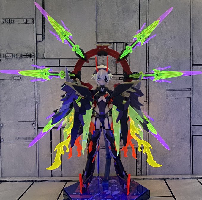 18 62 アクリルパーツ盛って大将軍みたいになったスサノヲ。 赤いクリアパーツと目もブラックライトに反応してる。 #メガミデバイス 22/02/08 19:48