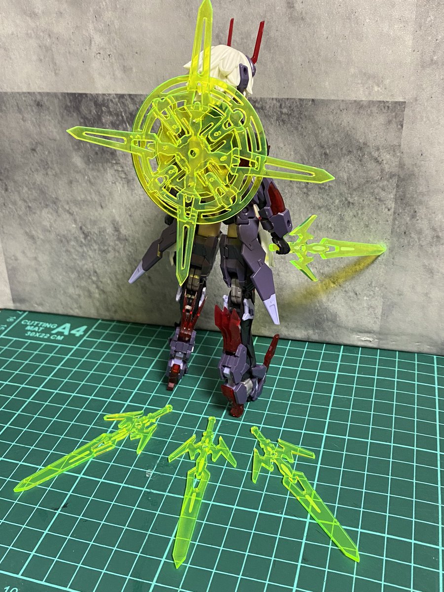 この機構を搭載した後光剣をAKガーデンに持っていきます! 組み立てやすさと遊びやすさはかなり上がってるはず…!! #メガミデバイス #AKGARDEN twitter.com/nannpla/stat…