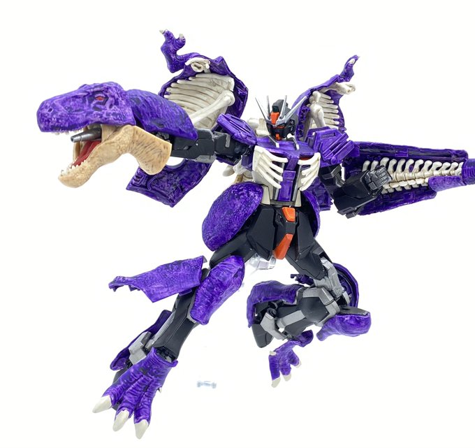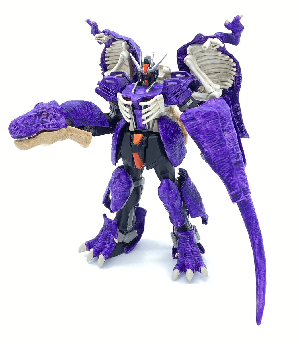完成!ティラノストライク! EGストライクに #プラノサウルス の皮を貼り付けて破壊大帝っぽくしました。 久々にガンプラ改造できて楽しかった〜!
