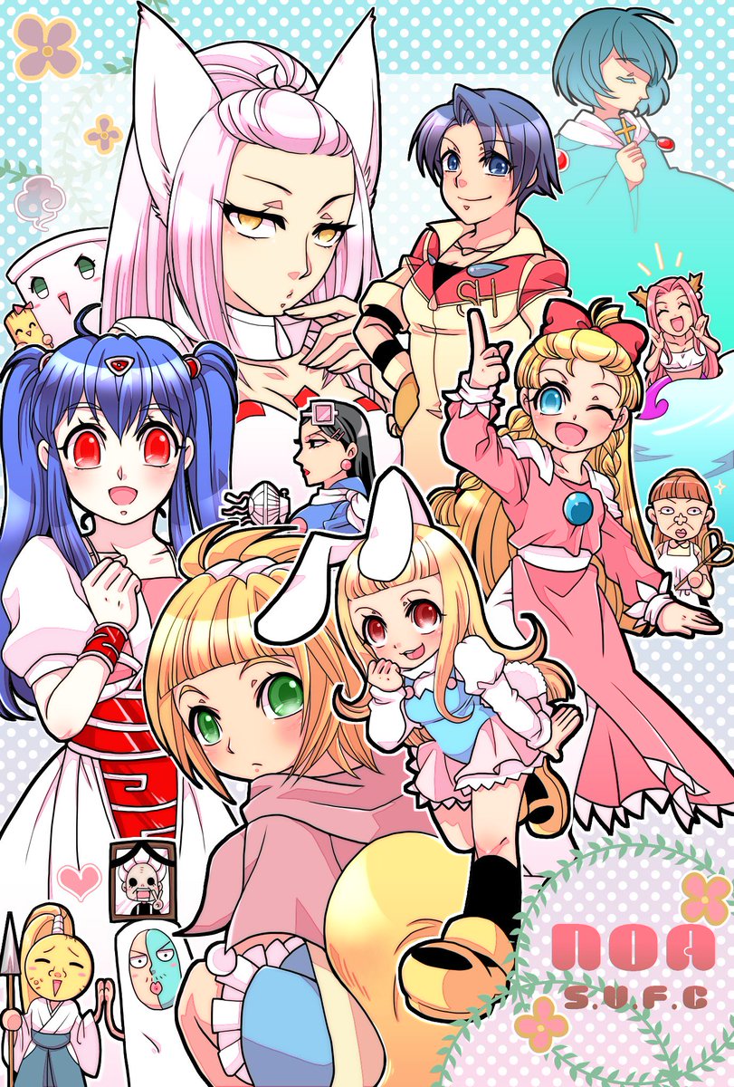 35 54 海の大陸NOA(無印~+)の主な女の子キャラたち。女の子…?なキャラもいるけど気にしない! 元絵は+連載時の落書きだった。約10年前… #海の大陸NOA 18/12/06 20:43