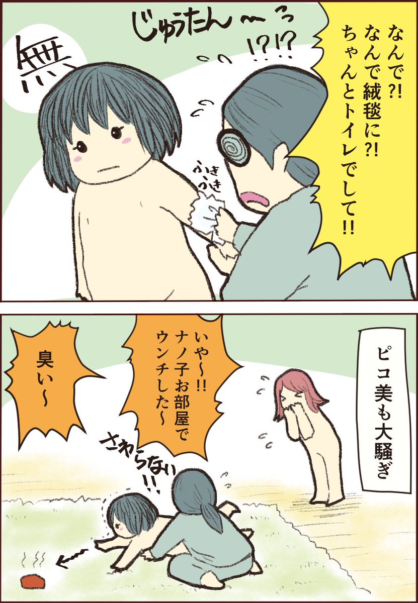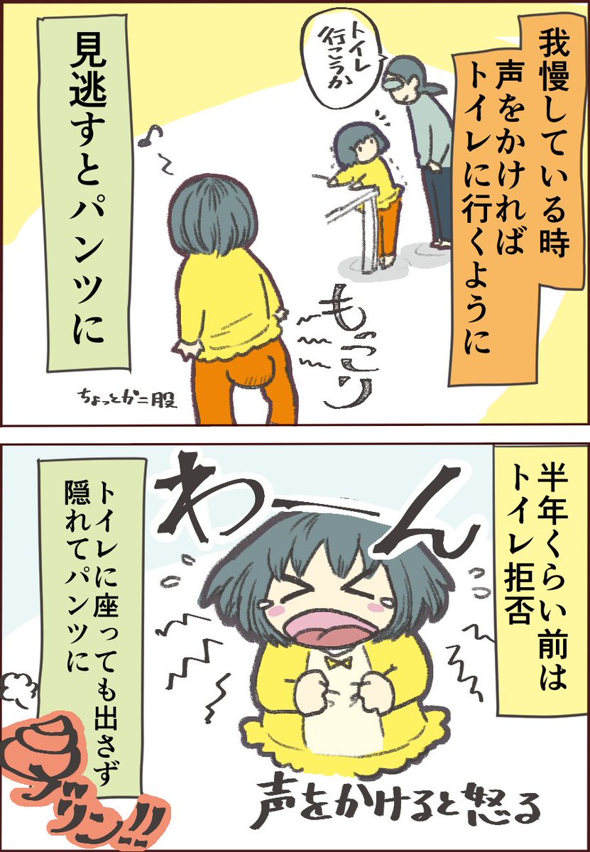 次女のトイトレ、昨日の続きです。 検尿コップからトイレへの移行! 数秒を争う緊迫した戦いと、凄まじい体力の消耗… nanopicoblog.com/asd-toilet-tra… #ASD #育児漫画 #トイレトレーニング