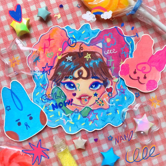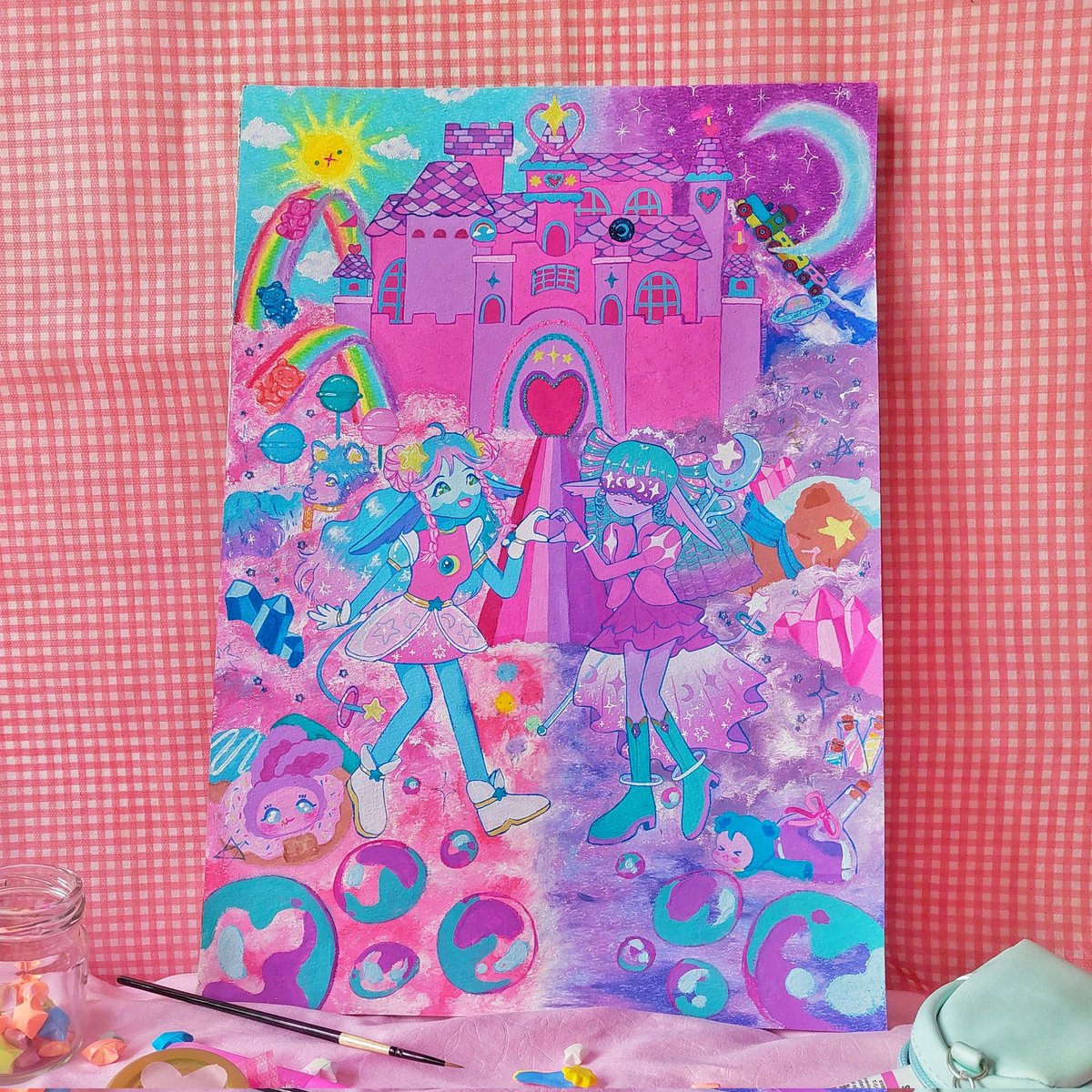 i got a chance to work on a big art commission again, commissioned by @dreambuns ♡ with a very adorable OCs and cute concept! lots of colors and sparkless, totally love it 🥺💝🍭🍬✨ #mixmediaart #artidn