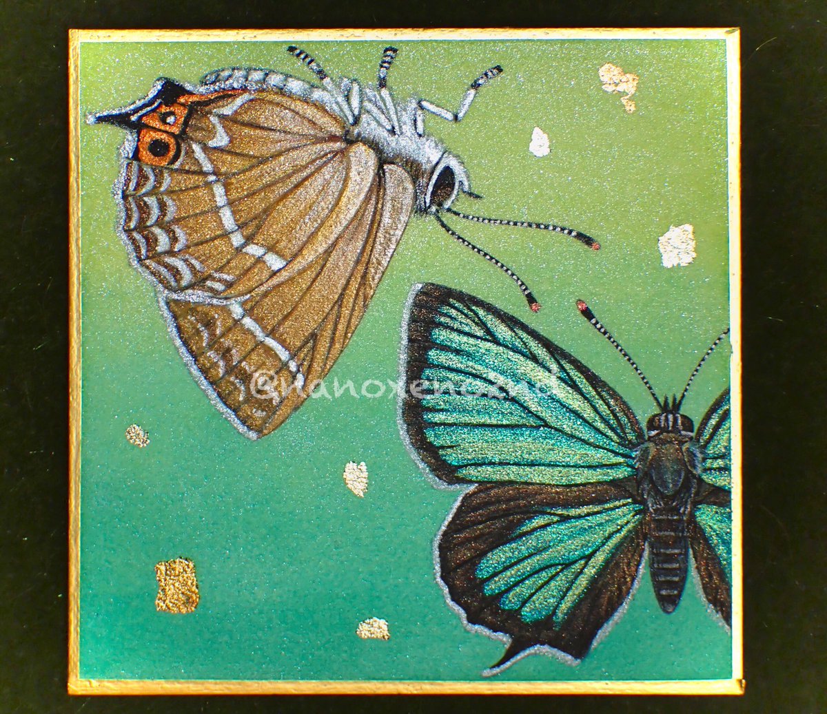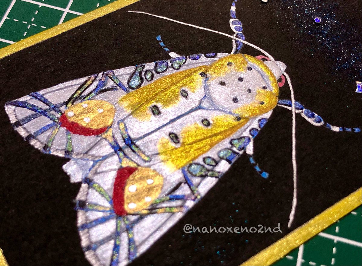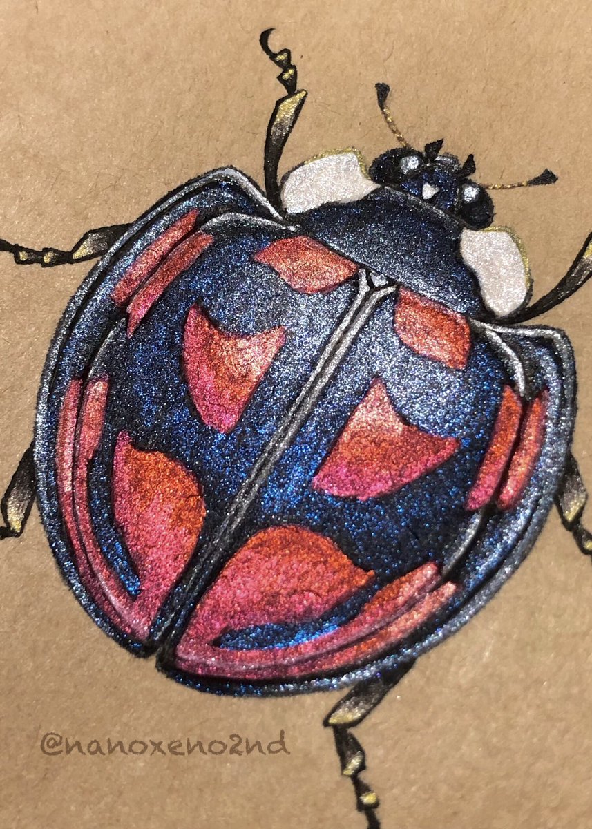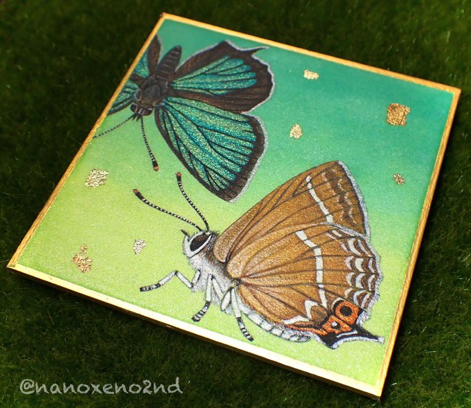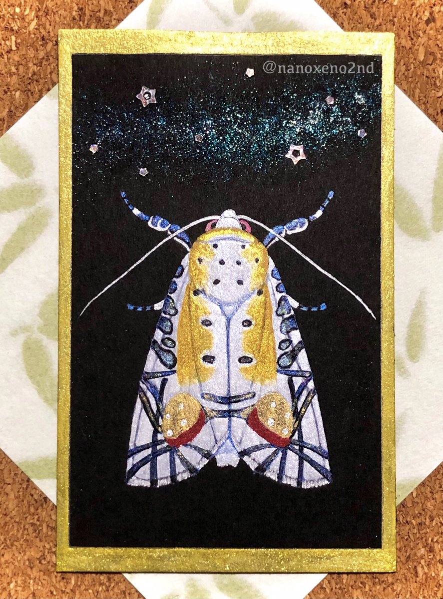 その姿はまさに生きた宝石💎✨ キンキラ輝くキンカメムシ4種盛り✨✨ まだどれも生体を見た事はなく、皆憧れの存在…! #顔彩 #ナナホシキンカメムシ #アカスジキンカメムシ #ニシキキンカメムシ #ラデンキンカメムシ #カメムシ #キラキラ #水彩画