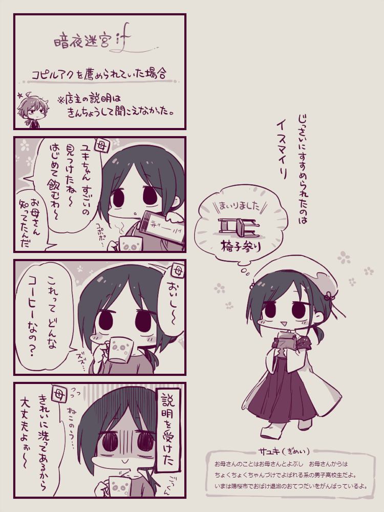 8 53 暗夜迷宮のロイヤルホワイトダイアリーが更新されたので(第6更新)、ジャコウネコーヒーver.を描きました(ひとつ前のエビー日記でうっかり浮かんでしまったので) 値段についてはごく少量ならギリいけんだろうか… 23/03/18 23:55