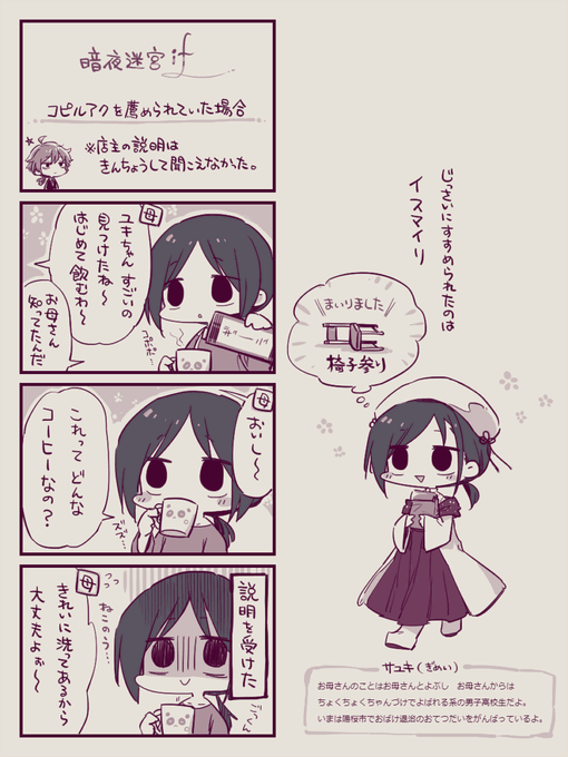 暗夜迷宮のロイヤルホワイトダイアリーが更新されたので(第6更新)、ジャコウネコーヒーver.を描きました(ひとつ前のエビー日記でうっかり浮かんでしまったので) 値段についてはごく少量ならギリいけんだろうか…