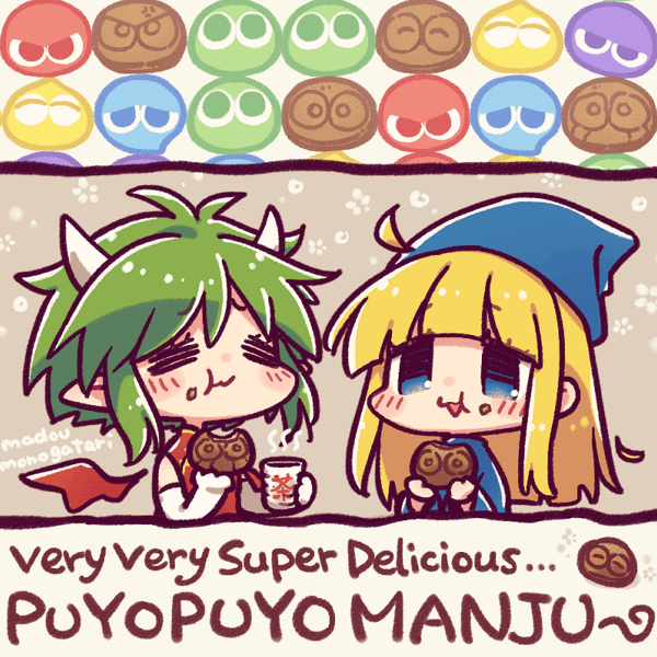 ぷよぷよまんじゅうと聞いて。 画像は1997年のDiscStation17号18号収録ゲーム「戦え!!北出マン」の敵キャラクター、ぷよマンです。自社製品で悪の怪人をつくるな。