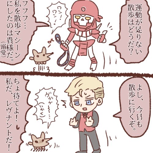 犬の散歩をするレヴナントくんです。