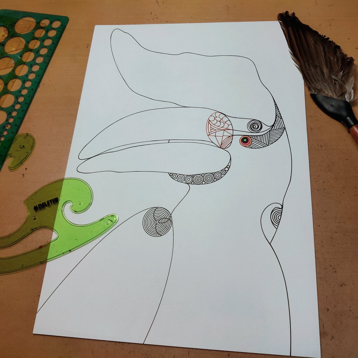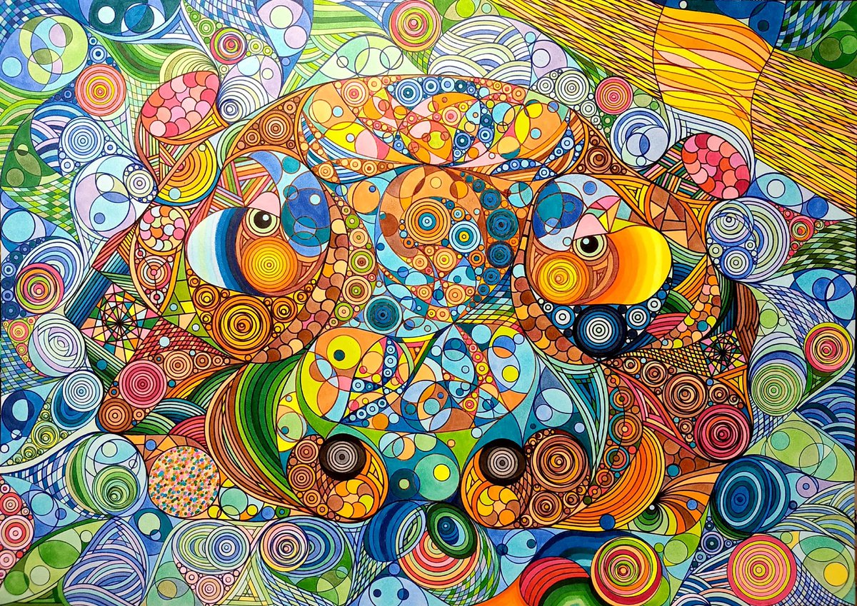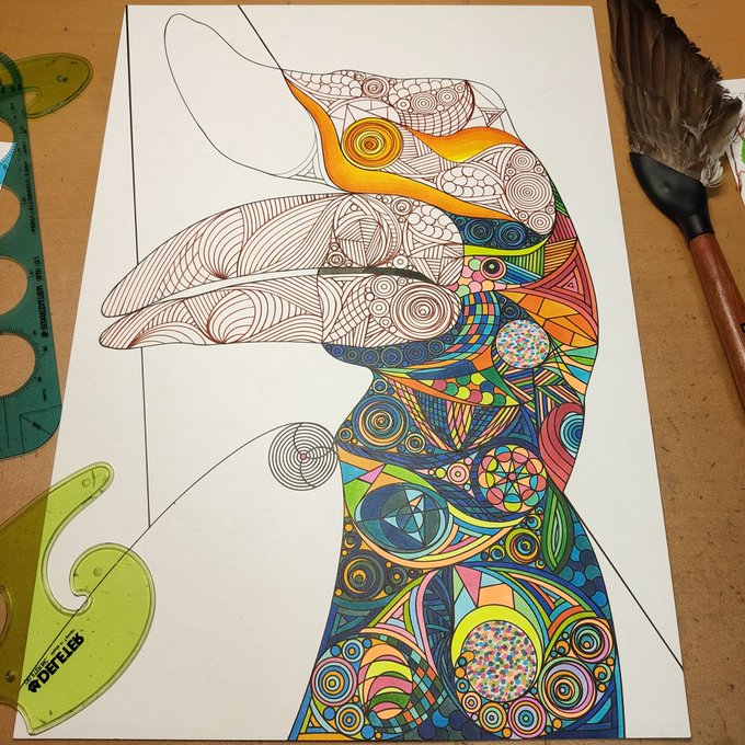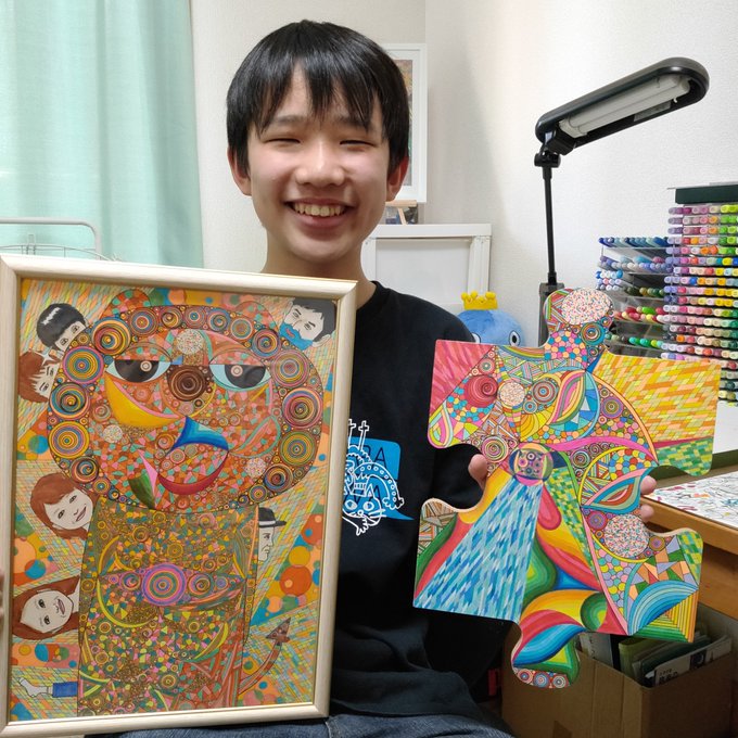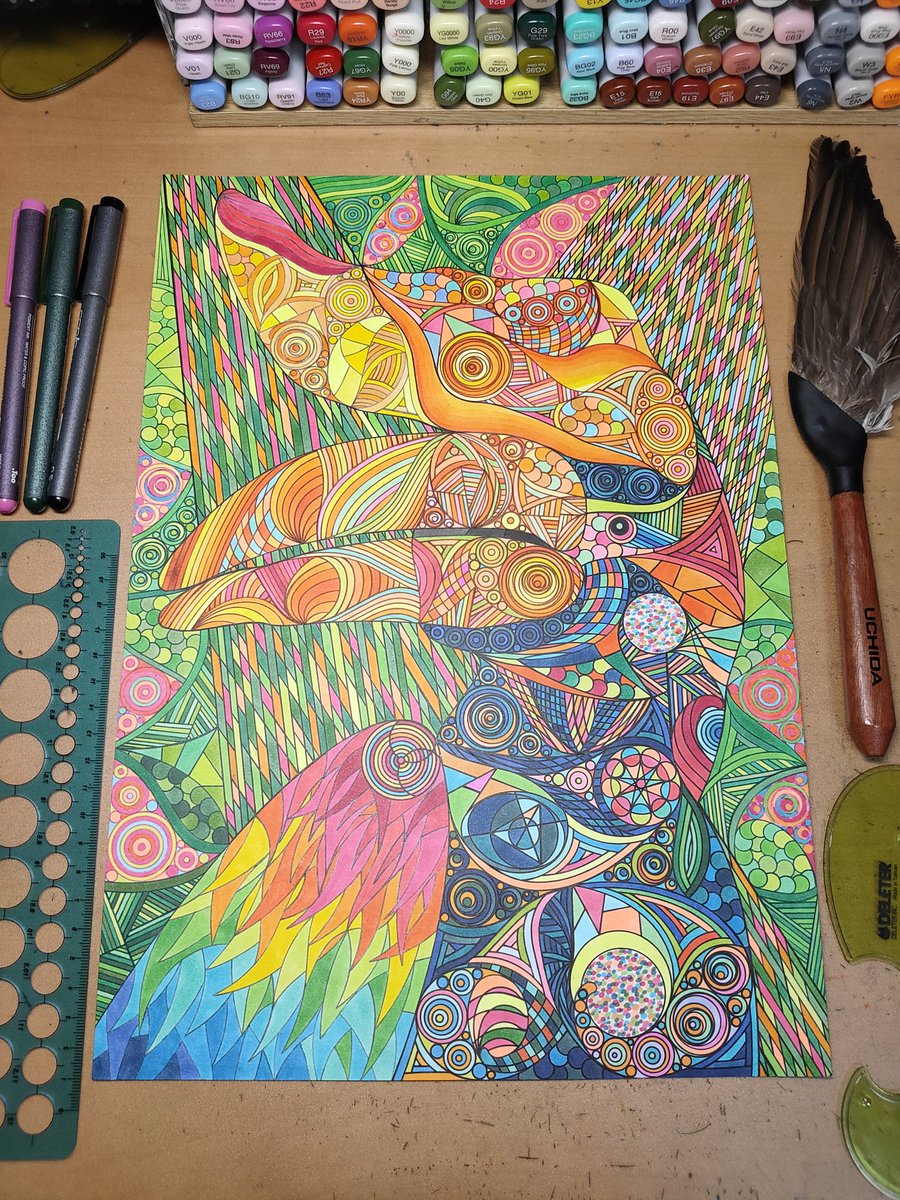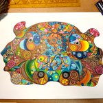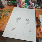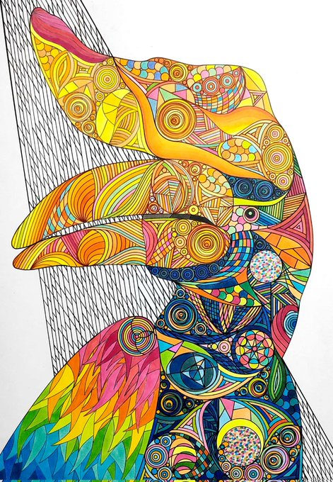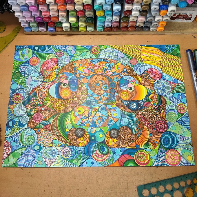 千裕の描く象の絵、顔の部分が完成しました!今までよりもずっと細かくカラフルに仕上げています。もう少しでテスト期間の為テスト勉強中心になりますが、体と背景も頑張って仕上げると意気込んでいました! 完成が楽しみです! #art #illustration #copic
