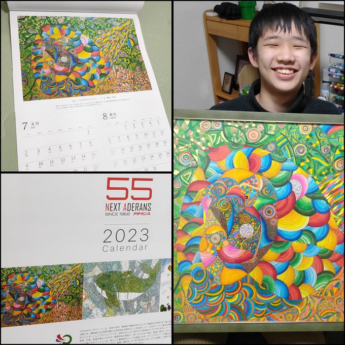 千裕の描いた「こもれびライオン」 この度、アデランス様の2023年度カレンダーに採用して頂きました。自分の描いた絵がカレンダーになりとても喜んでいる千裕、これからもコツコツと絵を描いて行きたいと意気込んでいました! #アデランス #パラアートTOKYO