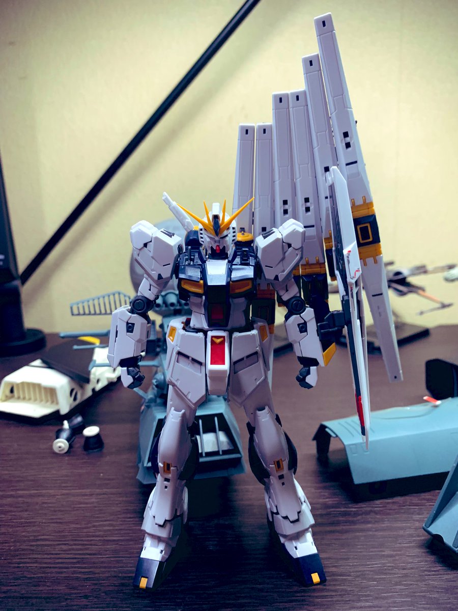 RG νガンダム 少しだけ 手を加えて 組み立て完了 #ガンプラ #ガンプラの画像を貼るとRTされると聞いて #νガンダム #逆襲のシャア