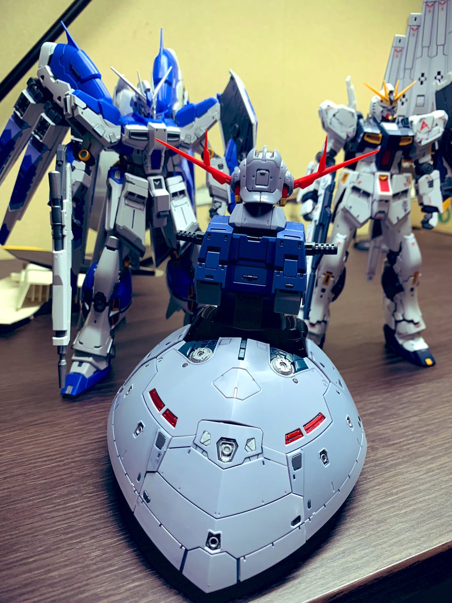 RG νガンダム とりあえず組み立て完了 デカールはまた明日 #ガンプラ #ガンプラの画像を貼るとRTされると聞いて #νガンダム #逆襲のシャア