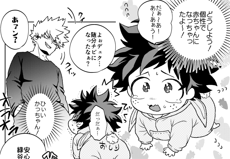 📖新刊「収拾つきません!」全年齢向 🍰💥🥦のオリジン組が伝染型の幼児化する個性にかかってしまい、わちゃわちゃするカワイイ本です♡ 🍼👶とらのあな専売👶🍼 ecs.toranoana.jp/joshi/ec/item/… どうぞよろしくお願いいたします✨ pixiv.net/artworks/10248…