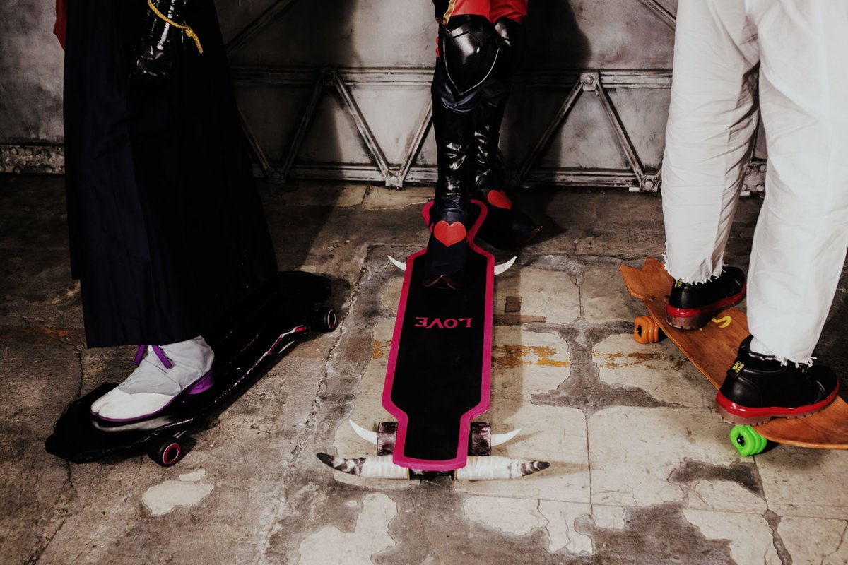 【コスプレ 】SK∞ アサキさんひぎりさんとエスケーエイトしてきた🛹 毎週リモートでアニメ見ながら衣装とかボードの相談したりして、久々に楽しかったー💕 ジョー:ひぎり チェリー:尚稀 愛抱夢:アサキ
