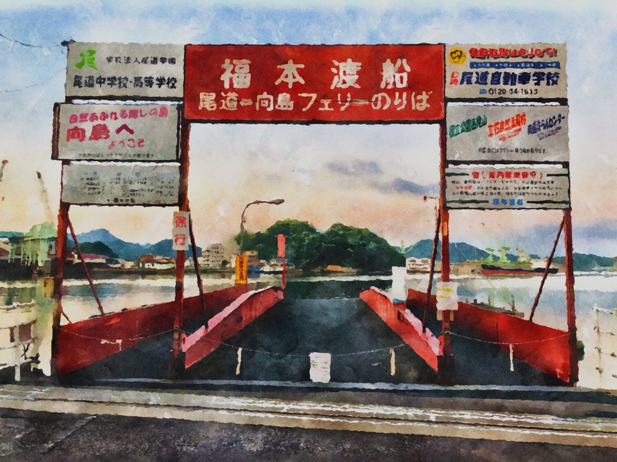 2 12 走島の写真を水彩画にした。田舎や昭和らしさが残る場所は本当に水彩画がよく似合う。個人商店や壊れた軽トラなど、ストーリーを勝手に感じる。 #広島県 #走島 #水彩画 #昭和 #昭和レトロ #懐かしい #フェリー #個人商店 #海 #ドラム缶 21/09/17 17:33