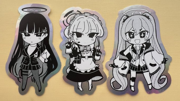 お品書きは明日出そうかな(イベント前日やで) 一画像にまとめないとこんな感じです ・新刊 500円 ・キラキラシール(セミナーと便利屋)(一枚につき一枚ミニコユキ付き) 300円 ・チーヒマアクリルスタンド 1500円 ・過去のキラキラシール 200円 (在庫ある分だけ)