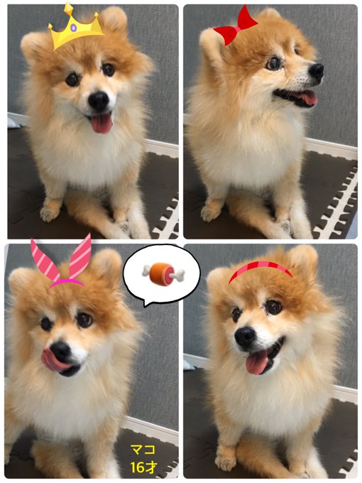 0 1 #老犬介護 #ポメラニアン #コスプレ ごはんを食べて、ごきげんマコちゃん❤️若い頃は、(妹)ミコは赤リボン、(姉)マコは黄色いリボンを付けてました。こういうの着けたら華やかですねー✨マコ、おばあちゃんだけど、いつまでも若々しくいてね。リボン買ってこようかなー🎀 21/01/31 14:14