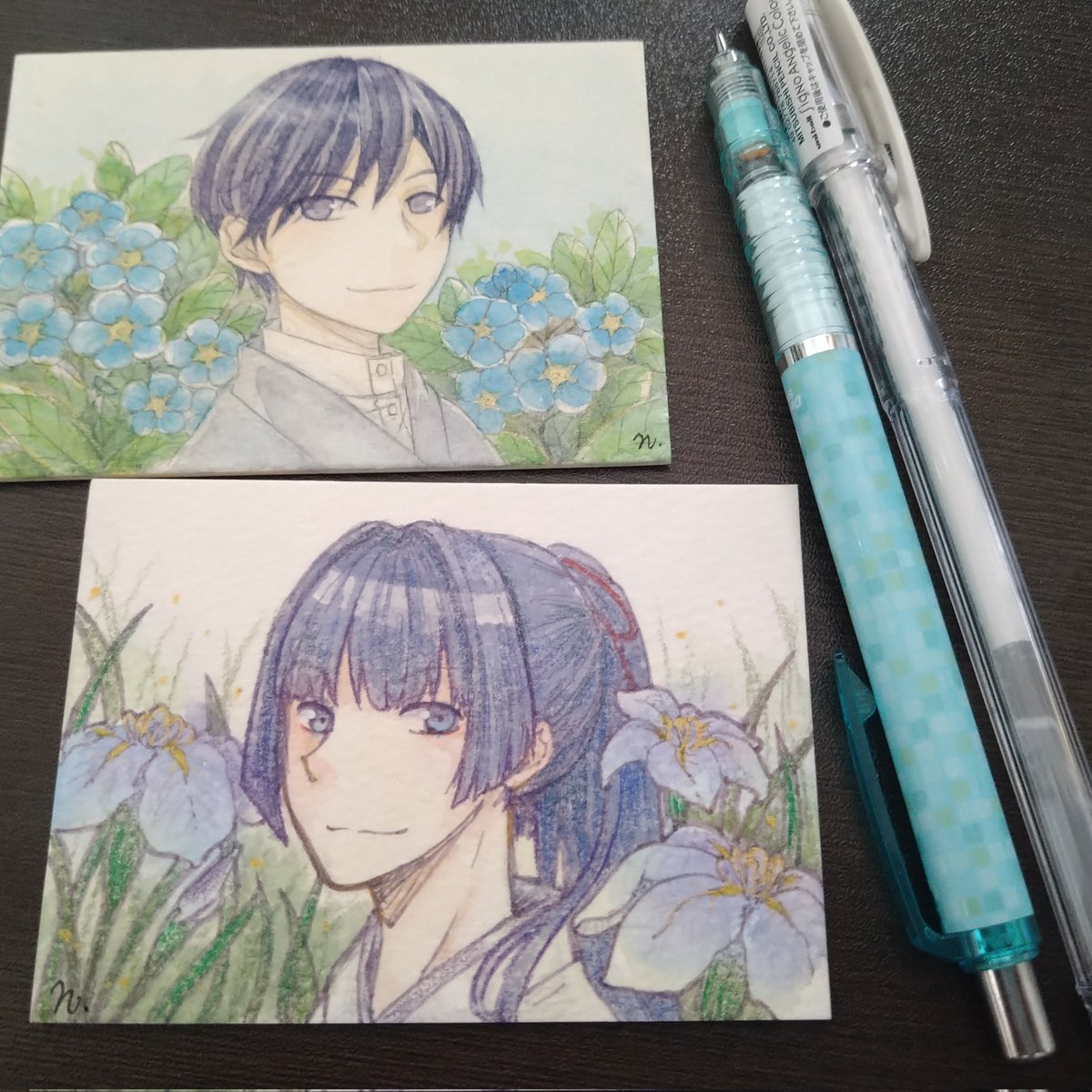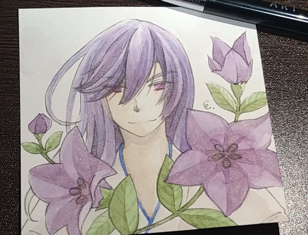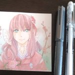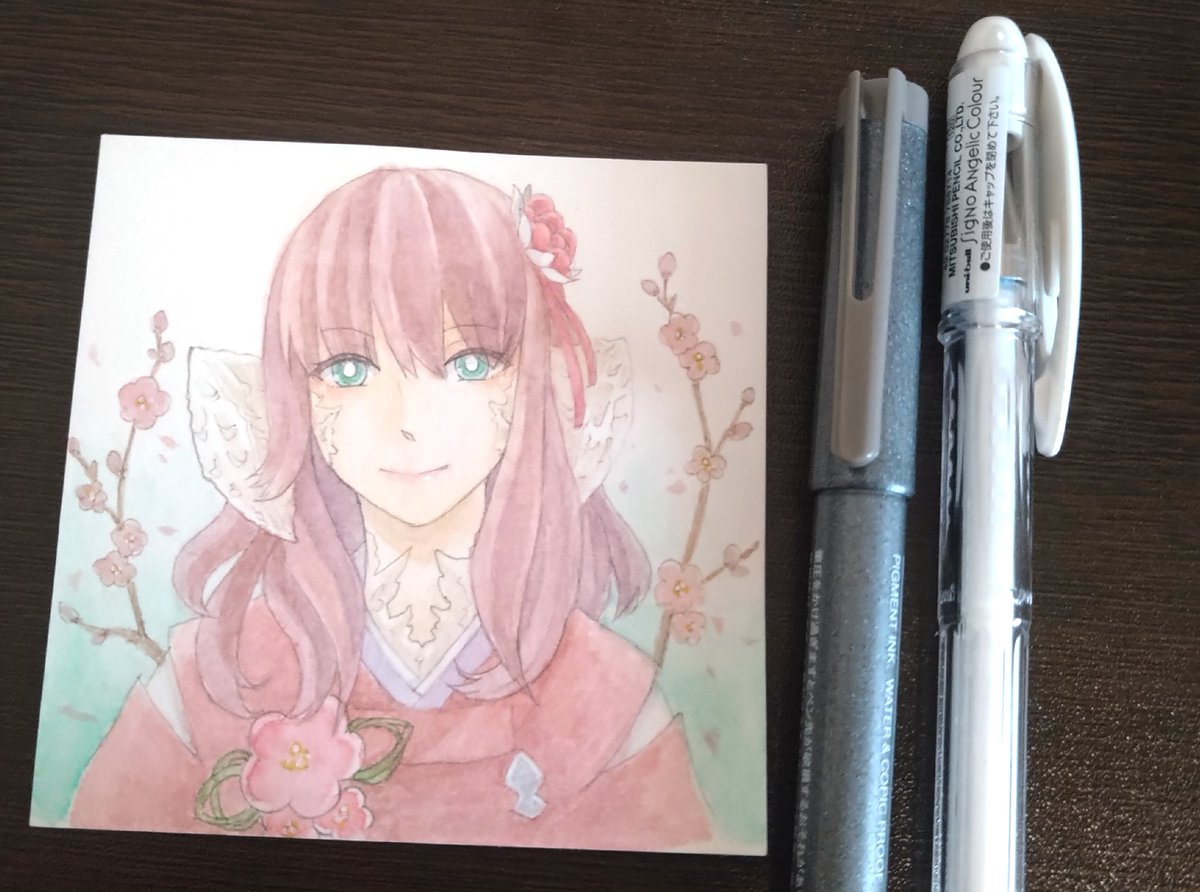 8cmスクエアの水彩紙(Beアートペーパー)に透明水彩絵の具で描いています。最近買った絵墨の色合いがお気に入り。 #春の創作クラスターフォロー祭り #お絵描き好きさんと繋がりたい #私の絵柄が好みって人にフォローされたい