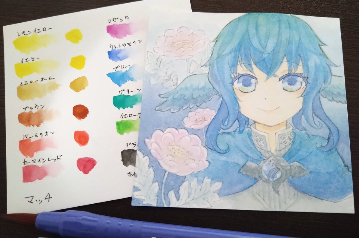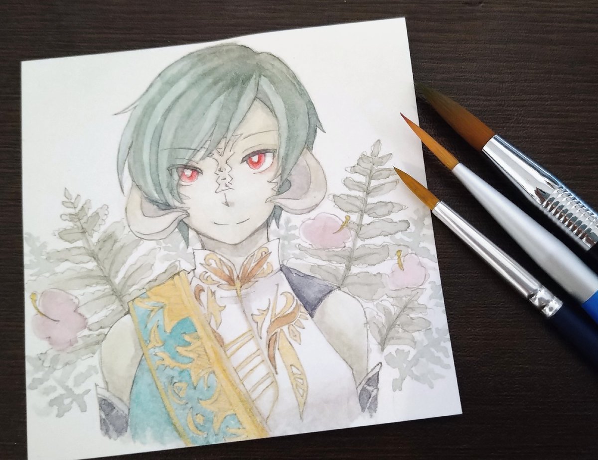 塗り終わった! スキャナーで取り込んだときの赤の劣化が凄いんだけど、どうしたらきれいに取り込めるんだろう?🤔 #イラスト #透明水彩 #絵描きさんと繫がりたい #私の絵柄が好みって人にフォローされたい