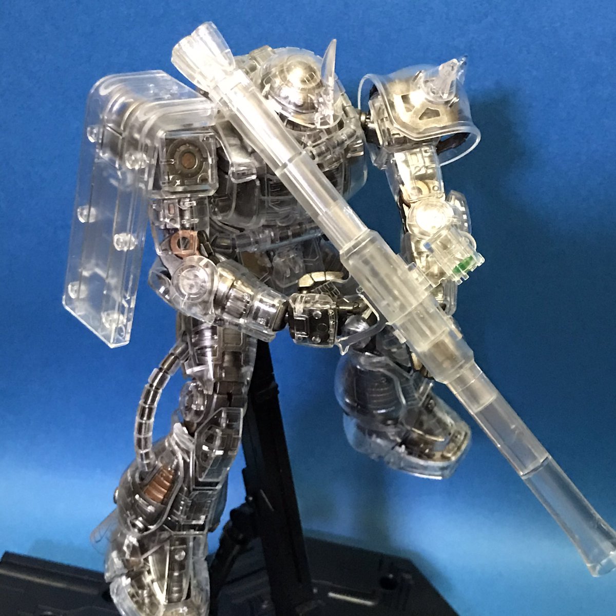 クリアザク完成です。久々の #ガンプラ やっぱカッコ良い😁 #プラモデル #ザクは国民の義務