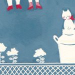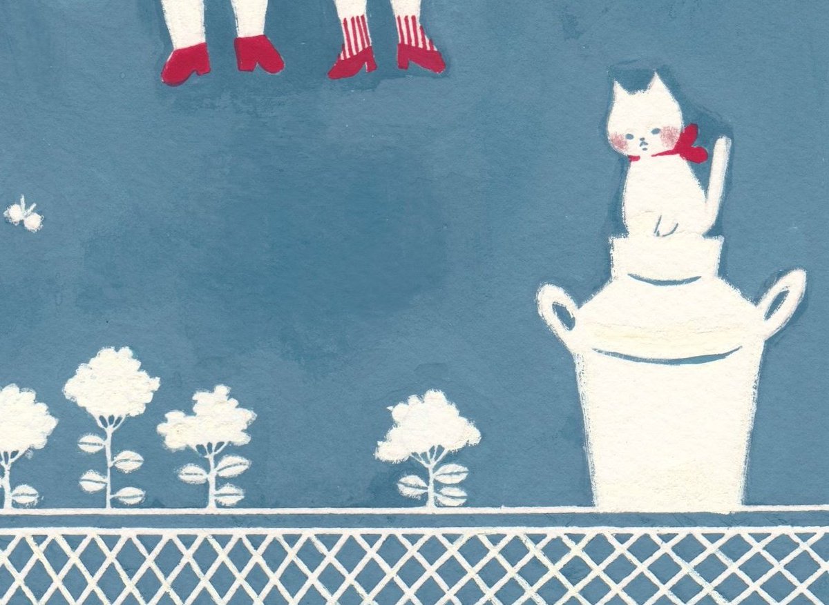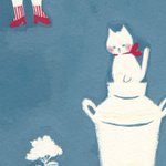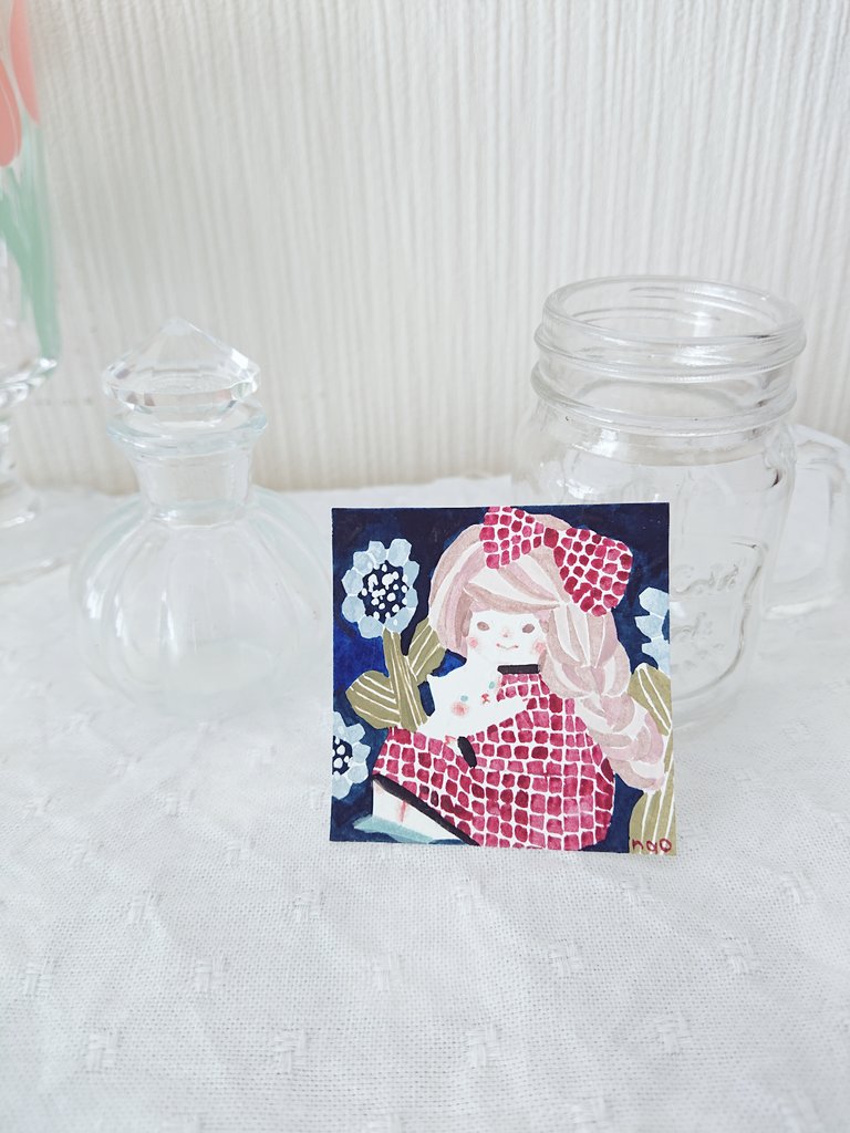 0 8 5cmの小さな絵。 花とネコと女の子。 #イラスト #水彩 21/10/30 10:33