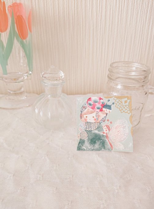 1 13 チューリップグラス、一緒に写ってるポストカードの絵はこちら🌼 #イラスト #絵 #水彩画 21/11/09 12:02