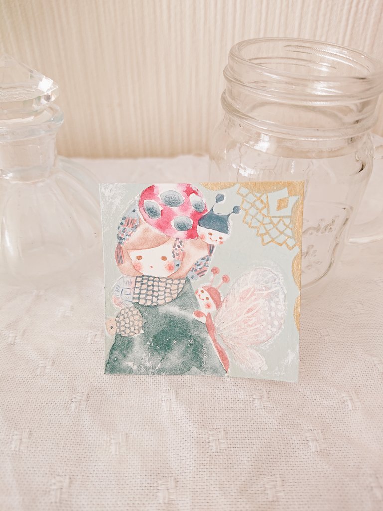 小さな絵。 小さな生き物。 5cm大です。 #イラスト #水彩