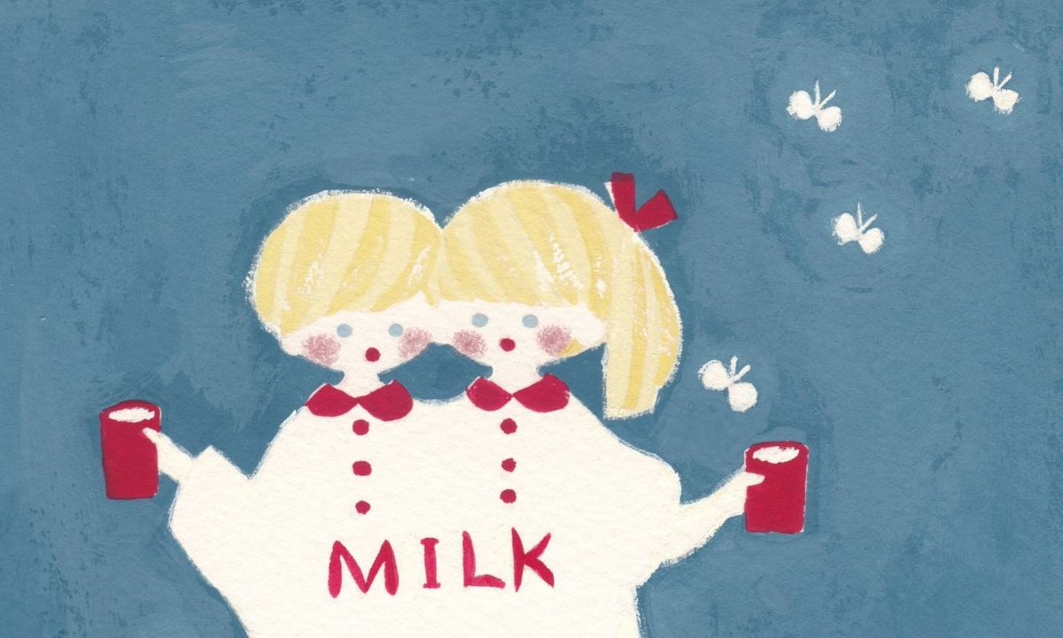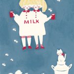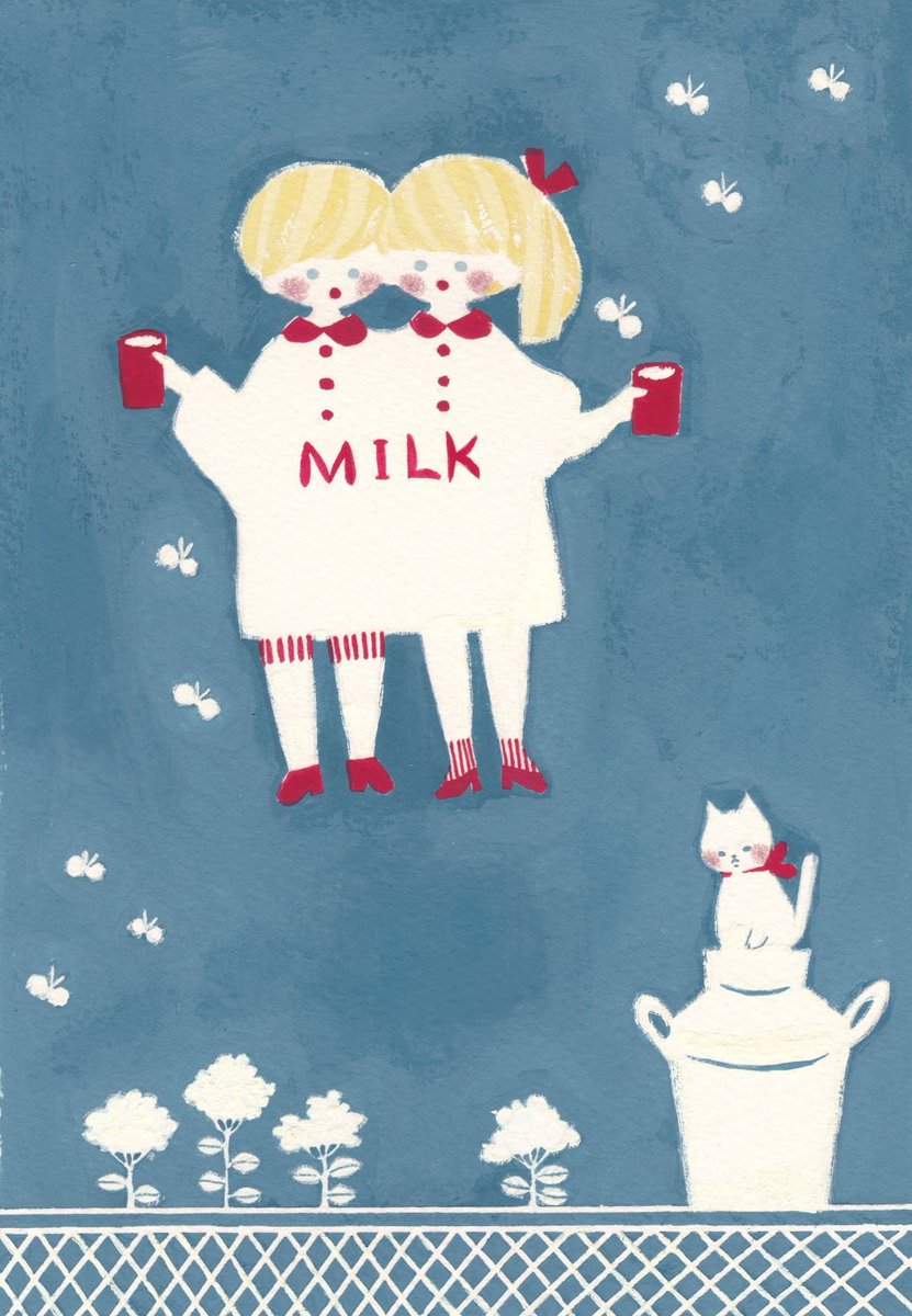 ミルクとネコチャン🐈 #イラスト #絵 #水彩 #レトロ