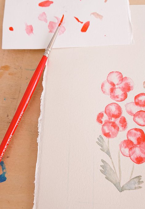 制作。 赤い花です🌼 #イラスト #絵 #水彩