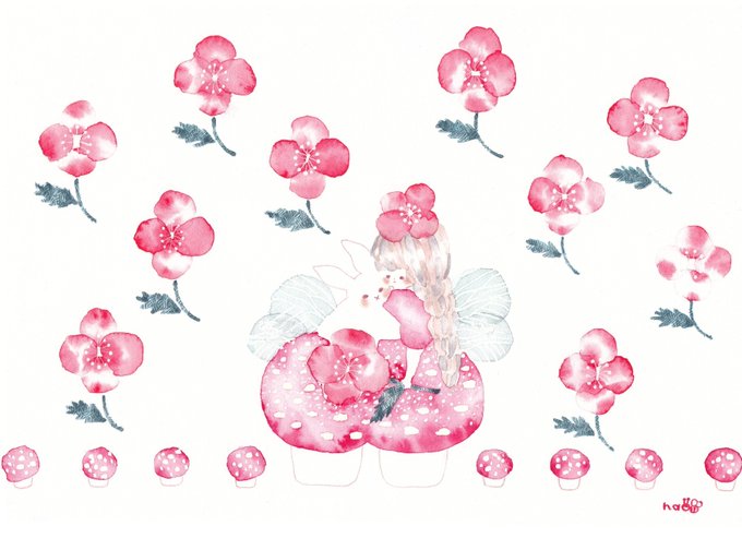 2 6 京都の個展のお祝いイラストを織田千代先生( @hagitugilamp )からいただきました。 花冠の女の子さんとテントウ虫ちゃん。とっても可愛いです。 お花もありがとうございました。 22/09/11 17:04