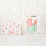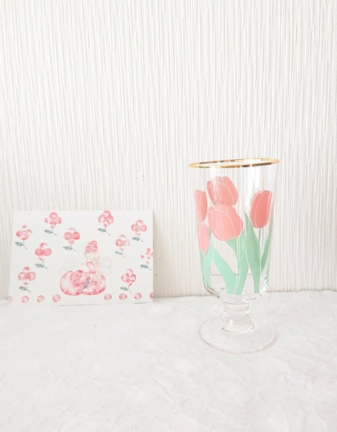 チューリップグラス、一緒に写ってるポストカードの絵はこちら🌼 #イラスト #絵 #水彩画