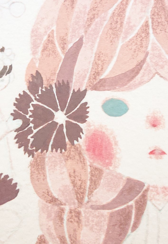 京都の個展のお祝いイラストを織田千代先生( @hagitugilamp )からいただきました。 花冠の女の子さんとテントウ虫ちゃん。とっても可愛いです。 お花もありがとうございました。