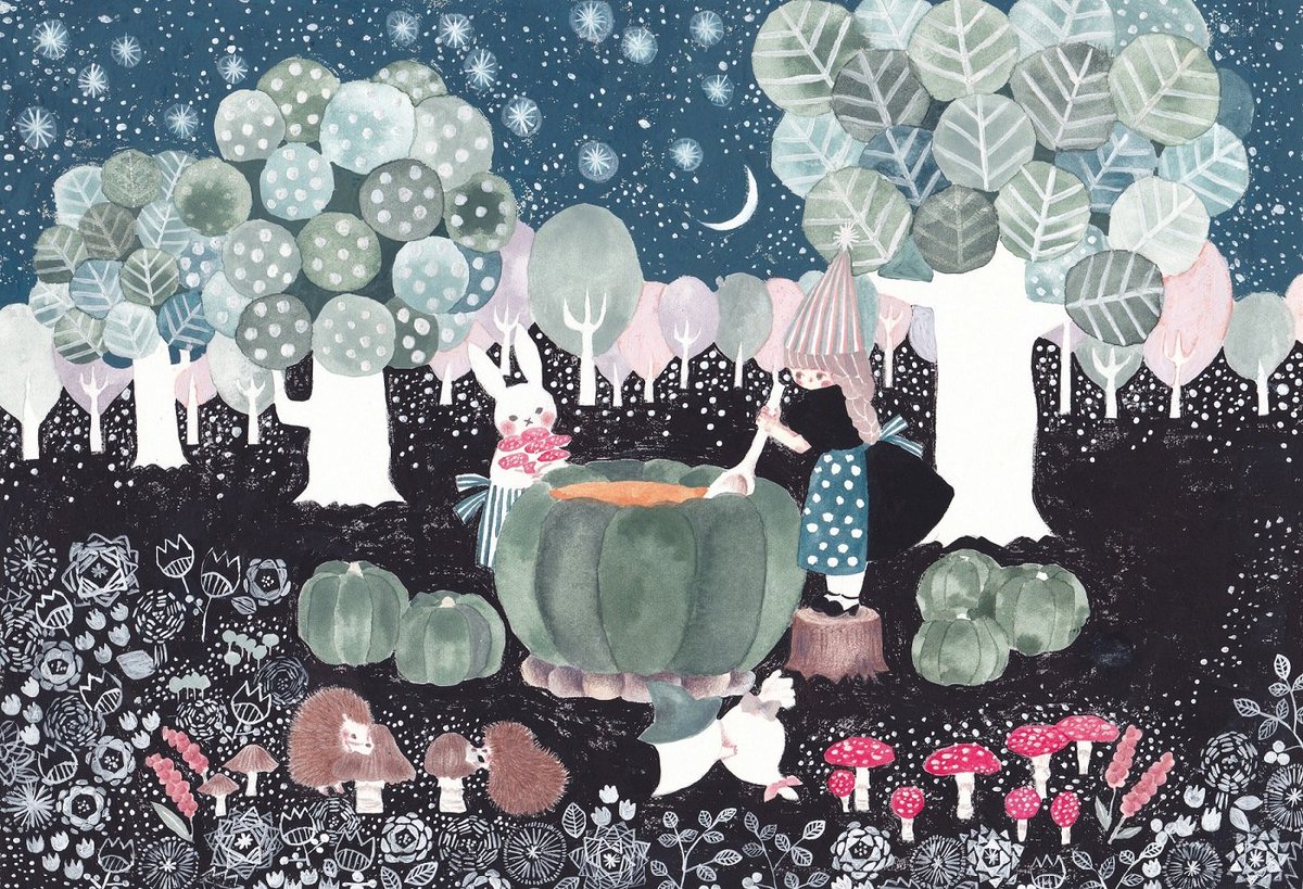 3 26 HAPPY HALLOWEEN 🎃 「夜が咲く」2019年 ハロウィン前の時期だからか、個展の会場販売のポストカードではこちらが一番人気でした。 #Halloween #ハロウィンイラスト 22/10/30 22:44
