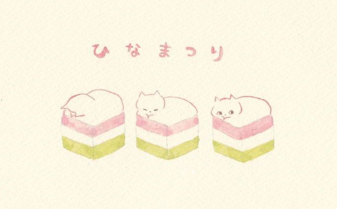 今日は楽しいひな祭り🎎 ねこひしもちです。 #イラスト
